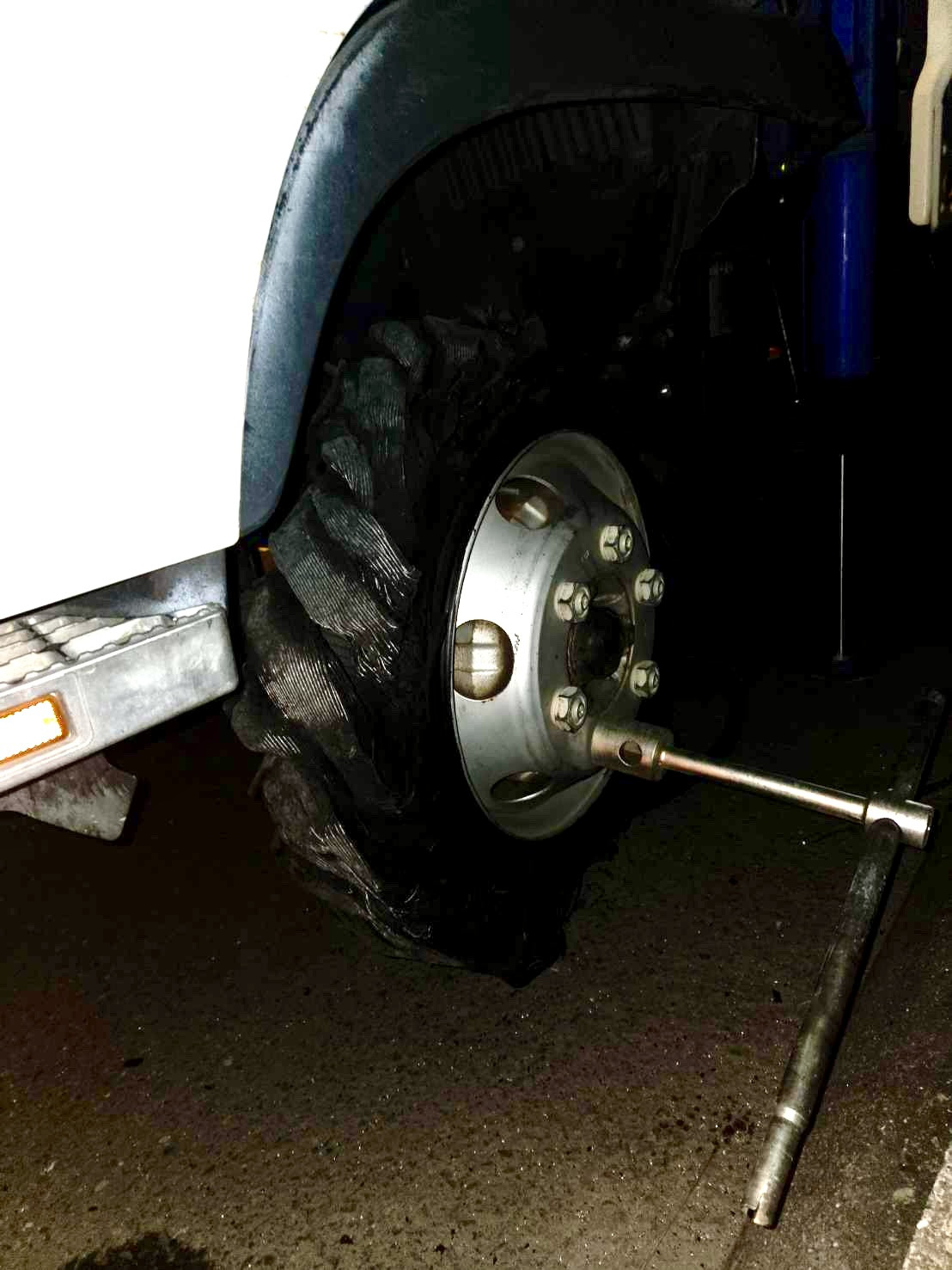 大宮の夜勤現場に向かうべく道中でまさかの4t車パンクです💦💦